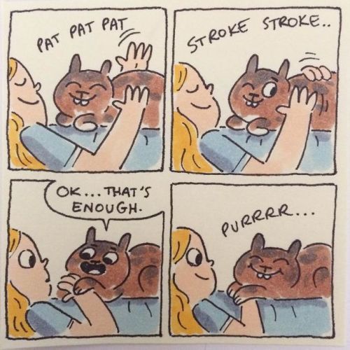 “I try to capture all the little fun moments that happen when living with cats. All my little cat comics are done on 4 by 4 post-it notes! My fluffy friends are always a great source of inspiration and entertainment. And best of all they are always there when you need a hug or a good cry.”
