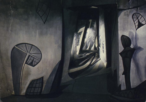 An Expressionist set from the 1920 film The Cabinet of Dr. Caligari, directed by Robert Wiene.