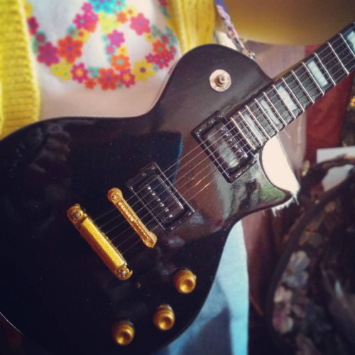 I really love this little guitar. It looks a lot like the one I had when I was a teenager. I had an amp (but it annoyed my sister when I plugged in), and I eventually had a band. I played at the church youth group, and with my friends (one became my boyfriend) and we even had one gig! It was at an orphanage on my birthday. The kids didn’t love us, but for half an hour, I was living the dream.