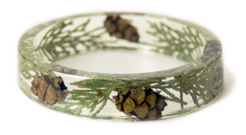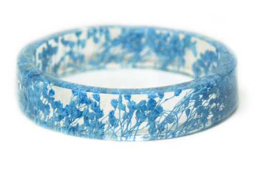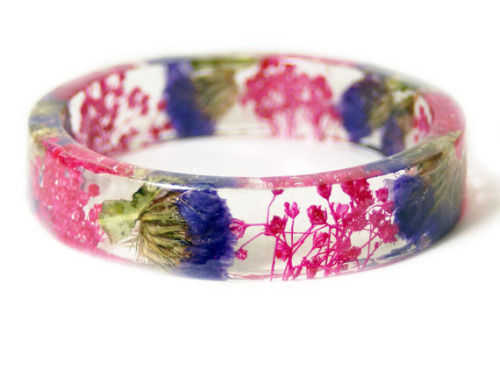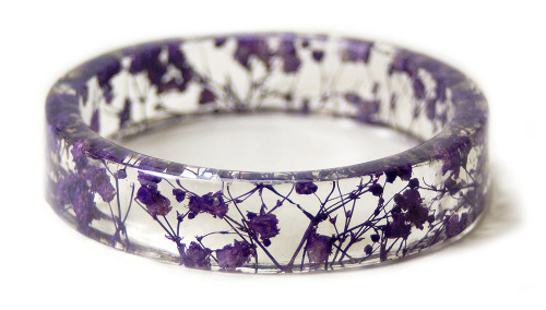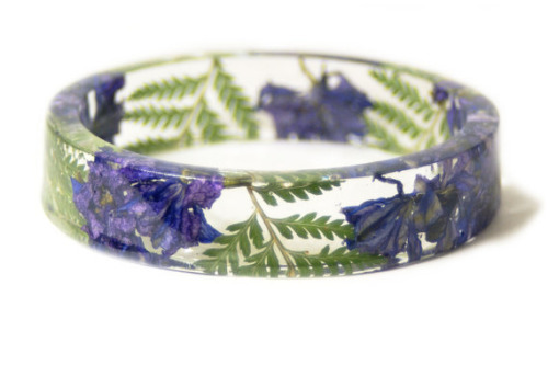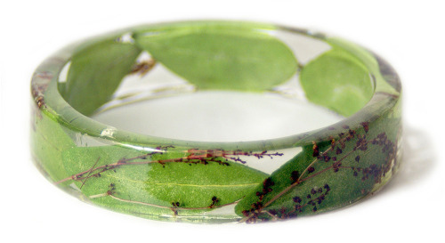 Embedded with leaves, flowers, plants, tree parts, and shells, these beautiful hand-crafted bangles are made in Coos Bay, Oregon. The transparent bangles come in different colors, which allow one to carry a piece of nature at all times. You can find more designs on their Etsy shop.