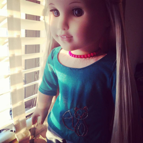 Spent today making a shirt instead of getting trampled in a store. Turned out nice! I like the sparkly fox a lot. #pixiefaire #agig #agjulie #juliealbright #americangirldoll #adultdollcollector #handmade #dollclothes #agdollclothes