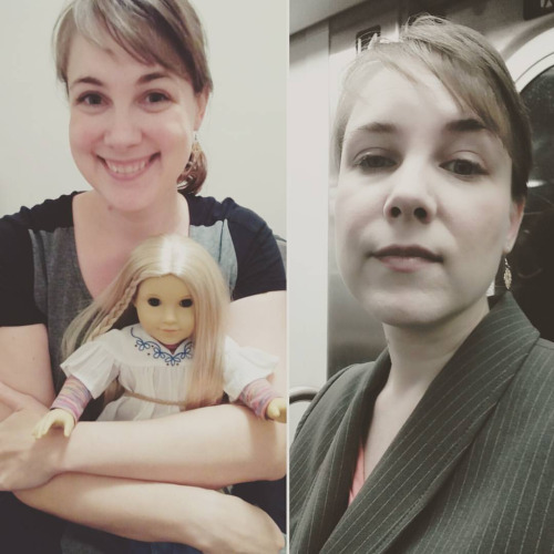 Two sides of me in one day. In which one do I look happier? #suit #innerchild #agjulie #mta #americangirl #america