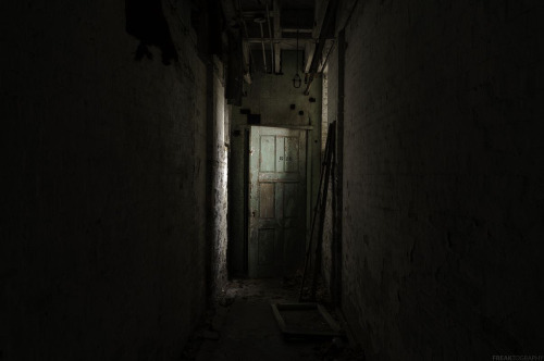 Here is a mysterious green door in the basement of an asylum, the basement held the patient seclusion rooms.