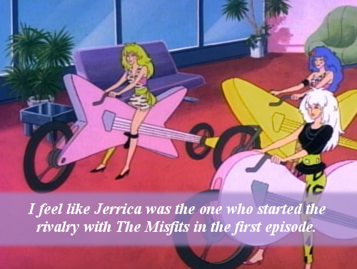“I feel like Jerrica was the one who started the rivalry with The Misfits in the first episode. They had no real reason to know who she was, or that Eric’s office was her late father’s office when they brought their bikes in and she just calls them garbage and then invites some band to come crash their battle of the bands. No wonder they don’t like her or Jem and the Holograms.”