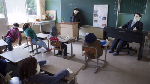 The dolls are made with straw, fabric, and old clothes, much like a humble scarecrow, and Tsukimi is constantly making new figures to replace ones that have worn out. The dolls are placed to look as though they are doing certain things that previous villagers once did.