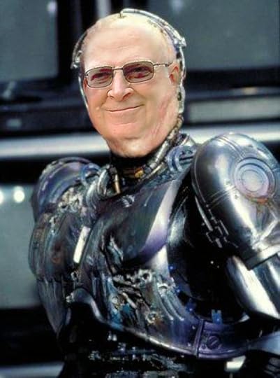 Hi, James. I’m sorry you perceive my reposting your book cover as copyright infringement. By way of apology I’ve used a photo of you I found on your author’s page to make you into a kick-ass Robocop. I trust this matter is now brought to a close.