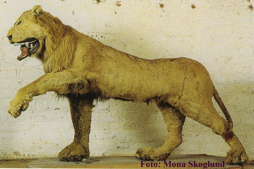I’ve seen this picture before. Apparently, a lion belonged to a king of somewhere, and when the lion died, he was heartbroken. The guy he hired to do the taxidermy apparently had never seen a live lion before and this was the best he could do.
