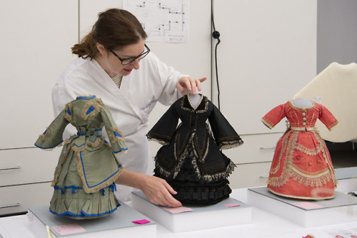 Inspired by clothing worn by fashionable women in the late 1860s and 1870s, each doll’s dress in “Little Ladies: Victorian Fashion Dolls and the Feminine Ideal” is showcased on a custom-made dress form to show off the magnificent detailing of fashion from the Gilded Age. Doll’s dresses and garments, late 1860s–1870s