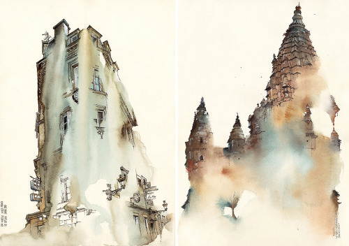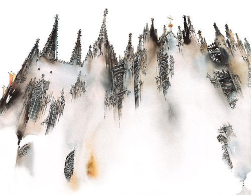 Bangkok-based artist Sunga Park has gained recognition for her stunning architectural studies, which seem to ethereally fade in a haze of paint. The dream-like nature of the Gothic and Renaissance buildings create an abstract and delicate composition. Park transforms the concrete buildings into softer and surreal memories, which seem to melt in time.