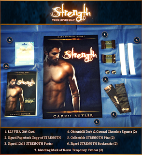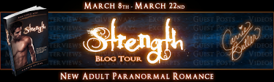 Ooooh goodie. I'm so excited to hand over today's blog post to Ms. Carrie Butler. Not only because I just loved her book Strength (review here), but because I get to incorporate all of her awesome graphics and that sexy cover! Plus, she's hilarious. As you might guess, so is her main character. Rena was constantly making me laugh out loud to myself as I was reading. So, I wanted to pick Carrie's brain and figure out how she went about writing such a funny (yet badass) character. Welcome to the blog Carrie!