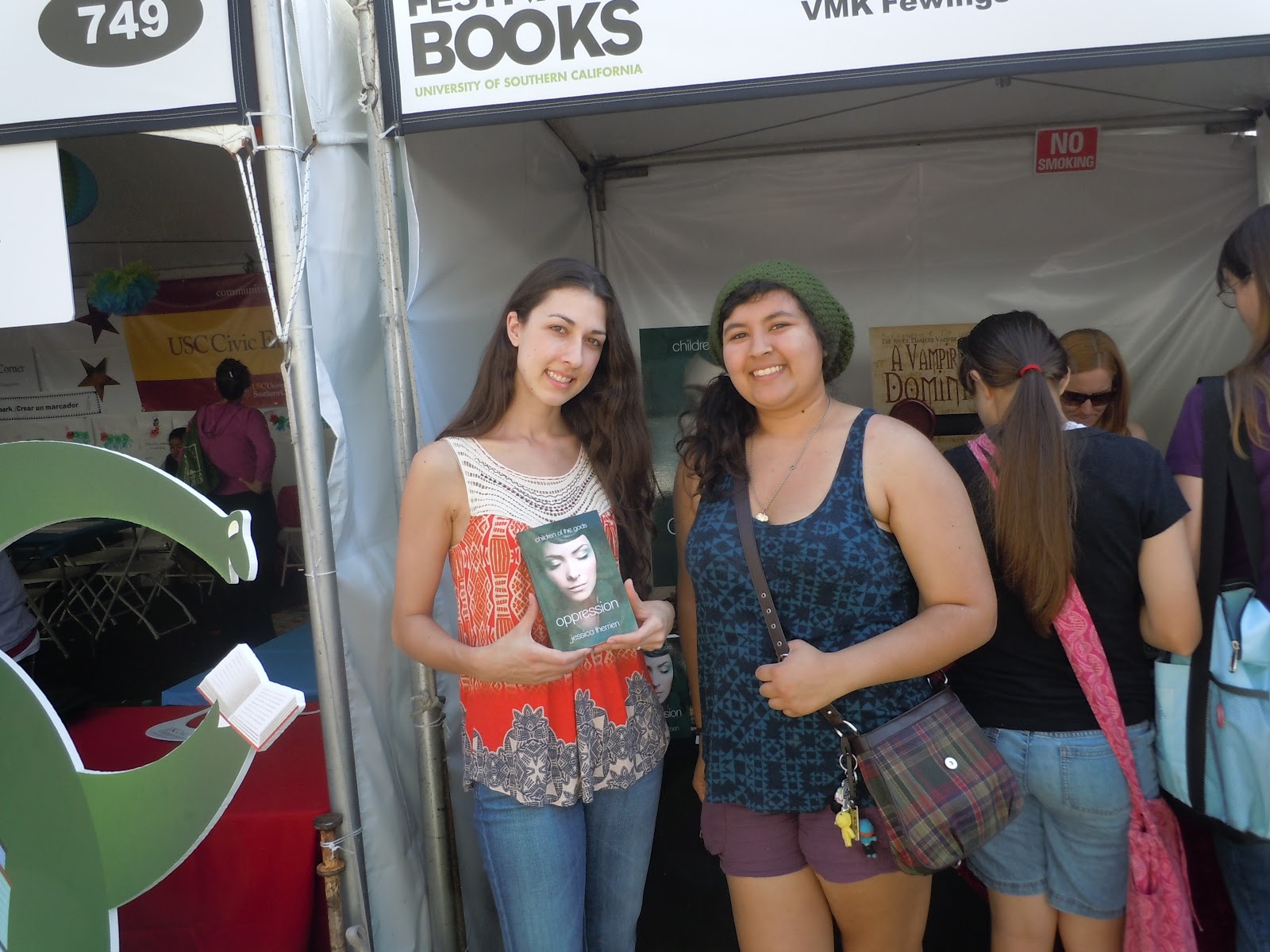 Secondly, the LA Times Festival of Books (last weekend) was AMAZING! I had so much fun! The ZOVA Books booth was next to the YA Stage, so I got to hear panels with well-known YA authors. Thankfully they drew a crowd, and I sold out both days! I also got to meet some really sweet Oppression fans (so strange to say that). I am still completely shocked every time someone comes up to me and says, "I'm reading your book right now, and I love it!" My first instinct is to ask them, "Really? Are you sure it's mine?" So surreal. I had one guy come up to me and say that his teacher was having his class read my book! That one was hard to believe. I must have asked him about a million times..."Are you sure???"