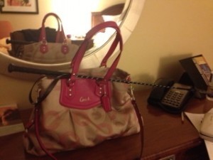 After the workshops, it was party time! Lots of different events were going on last night. I went to the Passionate Ink and the newly formed Contemporary Romance RWA chapter parties. Between parties I met author Jillian Chantal for a drink and placed my bag down with my party favor from the Passionate Ink party sticking out.