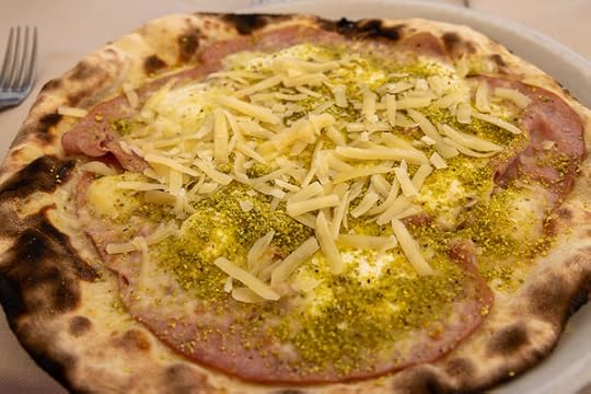A Mortadella and pesto pizza that was a pare shadow of the fabulous one I had in Venice.