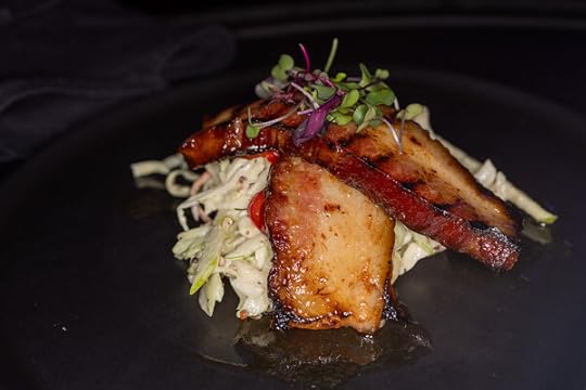 Maple & Bourbon Nueske’s Bacon. apple cabbage slaw – pickled mustard see...