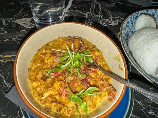 Crab rendang dip. Blue crab, beef rendang spice, shrimp chips.