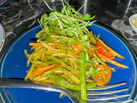 som dtam salad. green papaya, jicama, carrot, tomato, ebi peanut, thai chili.