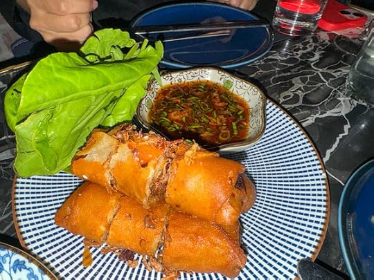 duck lumpia. cirspy duck roll, cermi...