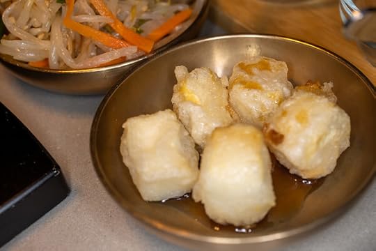 Fried rice cake or tofu – bland.