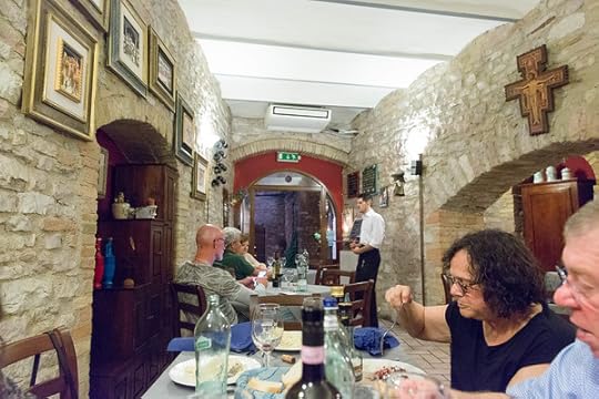 Our first dinner in the hillside pilgrimage city of Assisi. We had to walk UP quiet some way to get to this restaurant. Work off 10% of the cream.