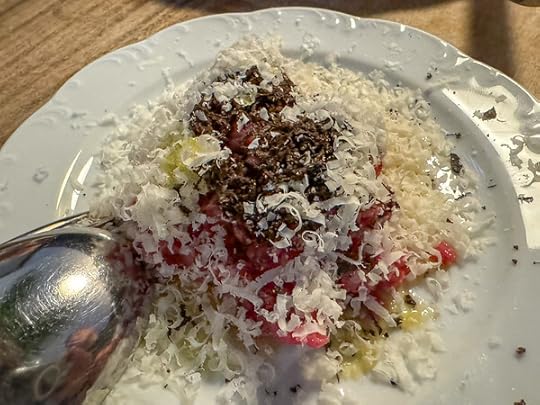 Carne Cruda. Dry aged Flannery Beef, Burgundy Truffle, 24 month Parmigiano Reggiano, Aioli.