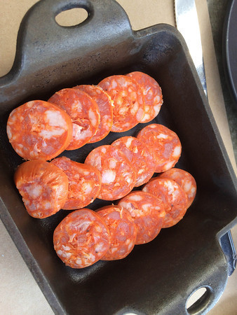 Chorizo sausage, green garlic. I don’t really see the garlic, but this is fine fresh chorizo (if said dish can ever be called fresh).