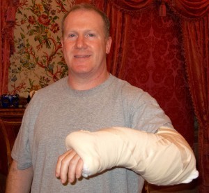 Damn! wrists aren't supposed to do that. Thoughts flash through my head. "That has to be broken. I've never broken anything, but that has to be broken. That means hospital. The car is like a blocks away. Uphill. Will I make it? Do I hail a cab and have my wife and son meet me? Will we miss our flight?"