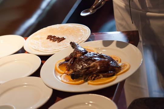 "Liberty Farms Duck Breast, Savoy Cabbage, Preserved Kumquats and Farro." Perfectly rare.