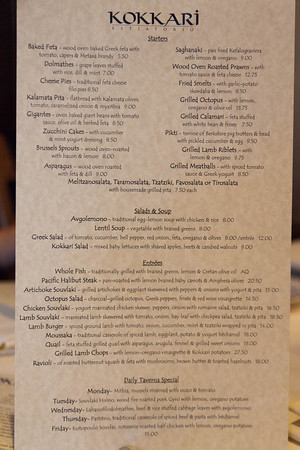 The menu. It's mostly traditional fare, but the Greek names have been dropped.