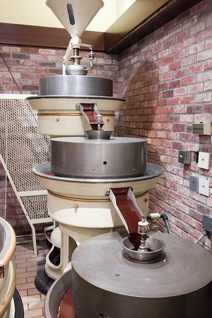 Inside, we have all sorts of old timey machinery churning chocolate.