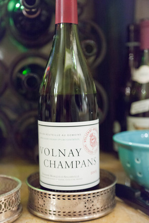 Yum, Burgundy from the cellar. Parker gives 93 points. "One of the three batches that will be blended to make up d 'Angerville's 2005 Volnay Champans was still in malo, so I base my assessment on the other two. Scented with cherry and cassis, flowers and fungus, smoke and chalk dust, this displays richness and depth, fine tannins and emerging silkiness, and a youthfully firm but long finish loaded with savory subtleties. Just give it 6-8 years before revisiting. (The outstanding d'Angerville 2004s were also very late to finish malo, and the Champans is especially memorable for its vivid sauteed champignons, alluring ginger spice, marrowy richness, and flattering mouth feel, indeed comparable in quality though lacking the developmental potential of this 2005. As a striking example of mercantile bipolar disorder, I purchased this outstanding 2004 for $49.99 from a merchant whose price on the 2005 thus represented a 350% premium!)