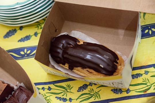Then I add creme fraiche mixed with dill and chives, red onion, and capers. Then lox. Yum yum.