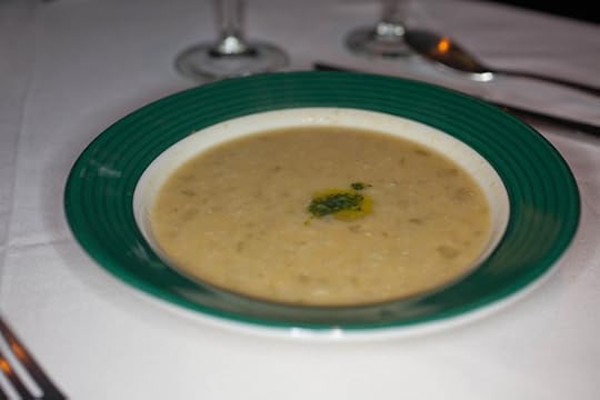 To start, "Shorba Bi Addes. Split Red Lentil in Vegetable Broth." This is a typical "rustic" or homemade soup. Variant bean soups can be found the world over. But I like lentils and this was nicely done with subtle tastes of the east.
