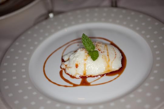 "Mouhalabiha Bi Dibus. Milk custard with Rose Water and Grape Syrup topped with Toasted Sesame Seeds and Almonds." A sort of Syrian panna cotta, this has a lovely soft texture (might be gelatinous for some) and a subtle rose water thing going on. I love rose water.