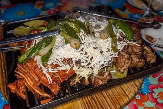 Botana Oaxaqueña. Assorted tasting platter of the best of our grilled Oaxacan meats. Includes chorizo, tasajo, cecina, chile relleno, carnitas, Oaxaca cheese, grilled onions and cactus. Served with guacamole, frijoles de la olla with nopalitos, and 14 memelitas. Serves 4 (this is the half size, the “full” size serves 8!).