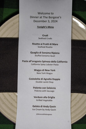 _Dinner at the Borgese’s is a special house dinner in Santa Monica cooked by the stunning pro-level home chef Borgese couple. Tonight’s dinner was a “game guy” dinner.