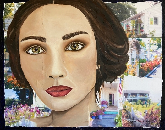 The model for Nightingale is a combination of my painting, “Sunset,” with hair styled using the AI, Artificial Intelligence, feature in Photoshop.