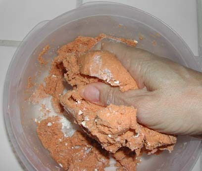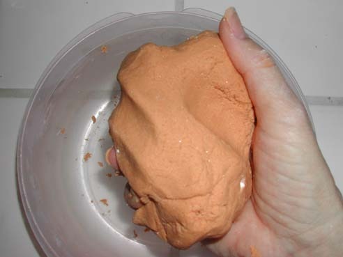 The mixture should be moldable but not sticky. If it is sticky, add more of the flour and salt mixture.