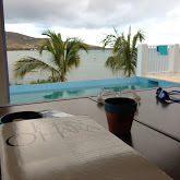 Because the (nearly) nine year old, Ella, is inside watching YouTubes instead of frolicking in the pool and enjoying the balmy breezes and sunshine. Wisconsin will be here too soon. Much too soon.
