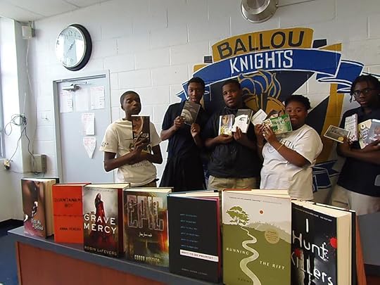 We here at Guys Lit Wire keep our fingers pretty close to the pulse of the DC school system as the Ballou Sr High School library is near and dear to our hearts. After three previous online book fairs to help stock the shelves, we were already planning to return to Ballou but the news that libraries in particular were facing major cost cutting measures in the city has just strengthened our commitment. When we began with Ballou in 2011 there were just over 1,500 books in the library, or 1.25 for each of the nearly 1,200 students. Now, they have 5,484 which means we are about a third of the way to our goal of meeting the ALA standard of eleven books for each student. The three book fairs for Ballou to date have resulted in over 1,000 books bought from Powells Books and many others donated directly to the school through the publicity we have helped generate. Now, we are back to Ballou for another round of gift giving from a list of 450+ great new books that has us all really excited.