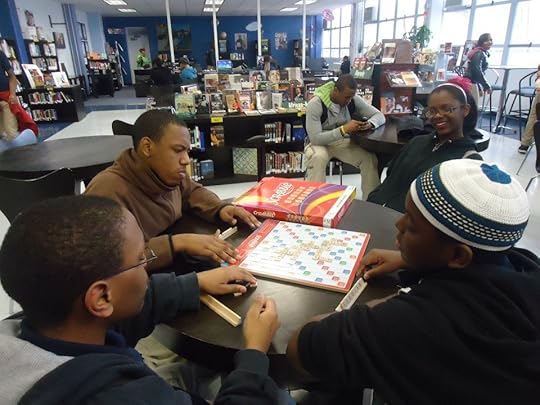 So, please, go to the wish list, buy a book and make one school at our nation's capitol a better place. Thanks so much for your efforts and if you can, spread the word on the book fair as far and wide as possible. Follow @BallouLibrary on twitter where Melissa will thank folks as the books arrive and for more pics of the library and check out their facebook page. And here are a few more pics of kids enjoying the Ballou Library: