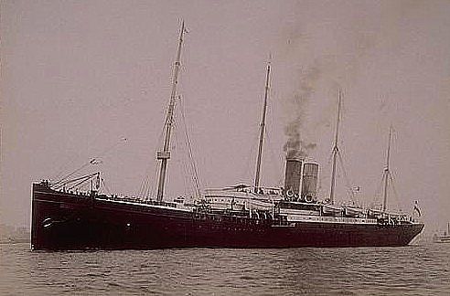 [Post pics: Maria & Rudolph Pressl with daughter Julia (standing) and new baby Ernestine, taken late summer/fall 1895. Julia was almost or just turned 5-her birthday was September 14. I think this is the baby's baptismal photo. The ship is the SS Eider, which brought my great great grandmother to America. More info on it here.]