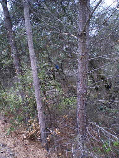 And then I saw a bird the most vivid shade of blue I'd ever seen perched in a pine. I talk to our cats, so it came naturally to me to call out. "Hello, birdie! What a vivid blue you are."