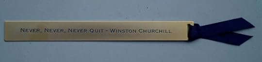 I'm a fan of bookmarks and have several with motivational sayings on them. The nice metal one below marks the place in my Bible where my daily reading will begin.