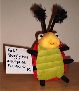 When I bought Buggly, I thought Gwynly might pooh-pooh my purchase. I had no idea he would like the little messenger as much as he does. And I certainly didn't expect him to reciprocate and use Buggly to bless me.