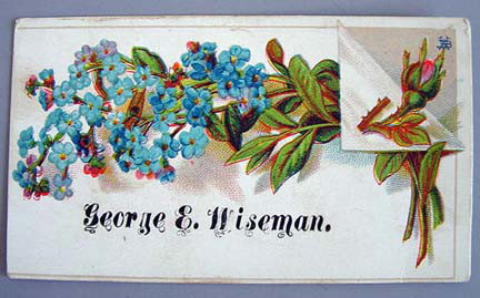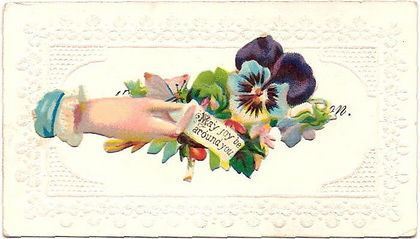 Both men's and women's cards often included flowers. The heroine of my debut novel, Elenora Watkins, loves violets, so she might have chosen a card like the one above.