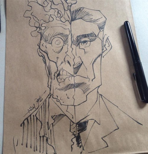 Two face sketch at #sacklunchcomics #twoface
