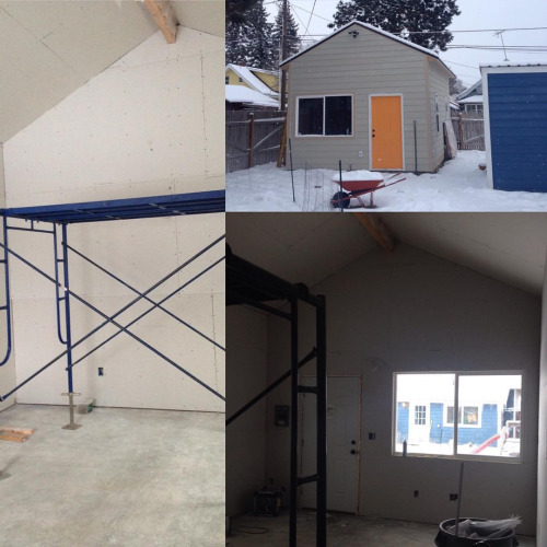 Update on The Shed. Or is it The FishTank? Or some other artist studio naming convention? Anyway. Today the mudding and taping is happening. I think we’re about a week away from completion. #studioshed #studio