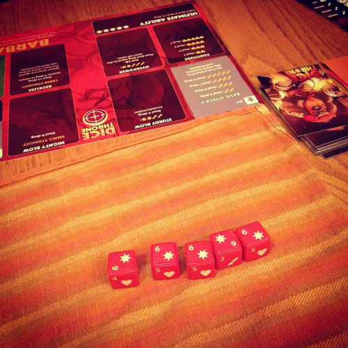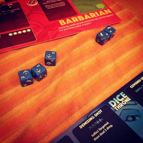 Lisa’s defense roll where her Moon elf died but also killed my barbarian who only had 1 health! Tie! #tabletopgames #dice #barbarian #dicethrone #moonelf