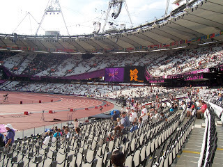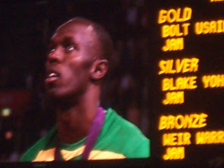 In that spirit I've decided to add a couple of photographs a family member took inside the stadium on the night Usain Bolt won the 200m. Apparently words are not sufficient to describe how impressive an event it was. The first just highlights where they were sitting and how big it was, the second is the man himself.