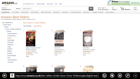 So far The Trust is hovering nicely near the top of the most downloaded books charts on amazon.com and amazon.co.uk as you can see from these screenshots. Be nice if they hovered a little higher.